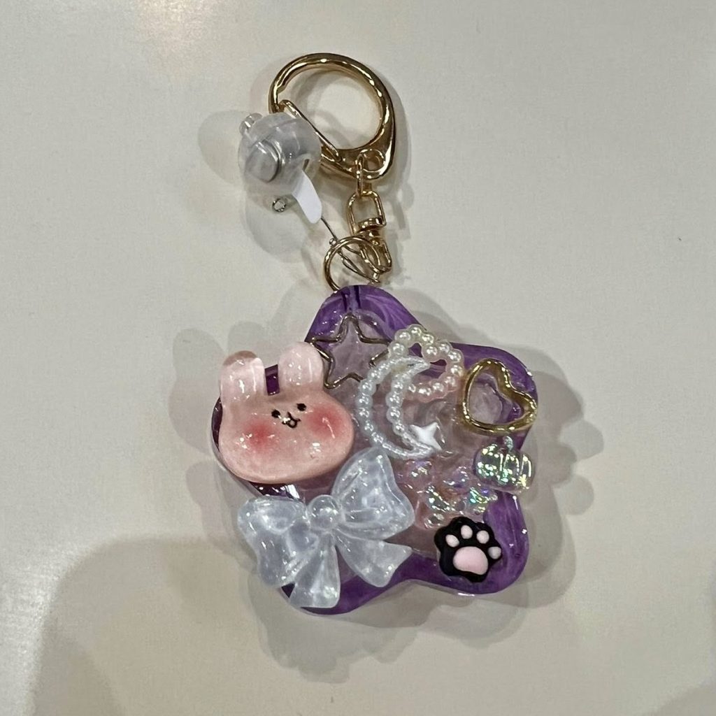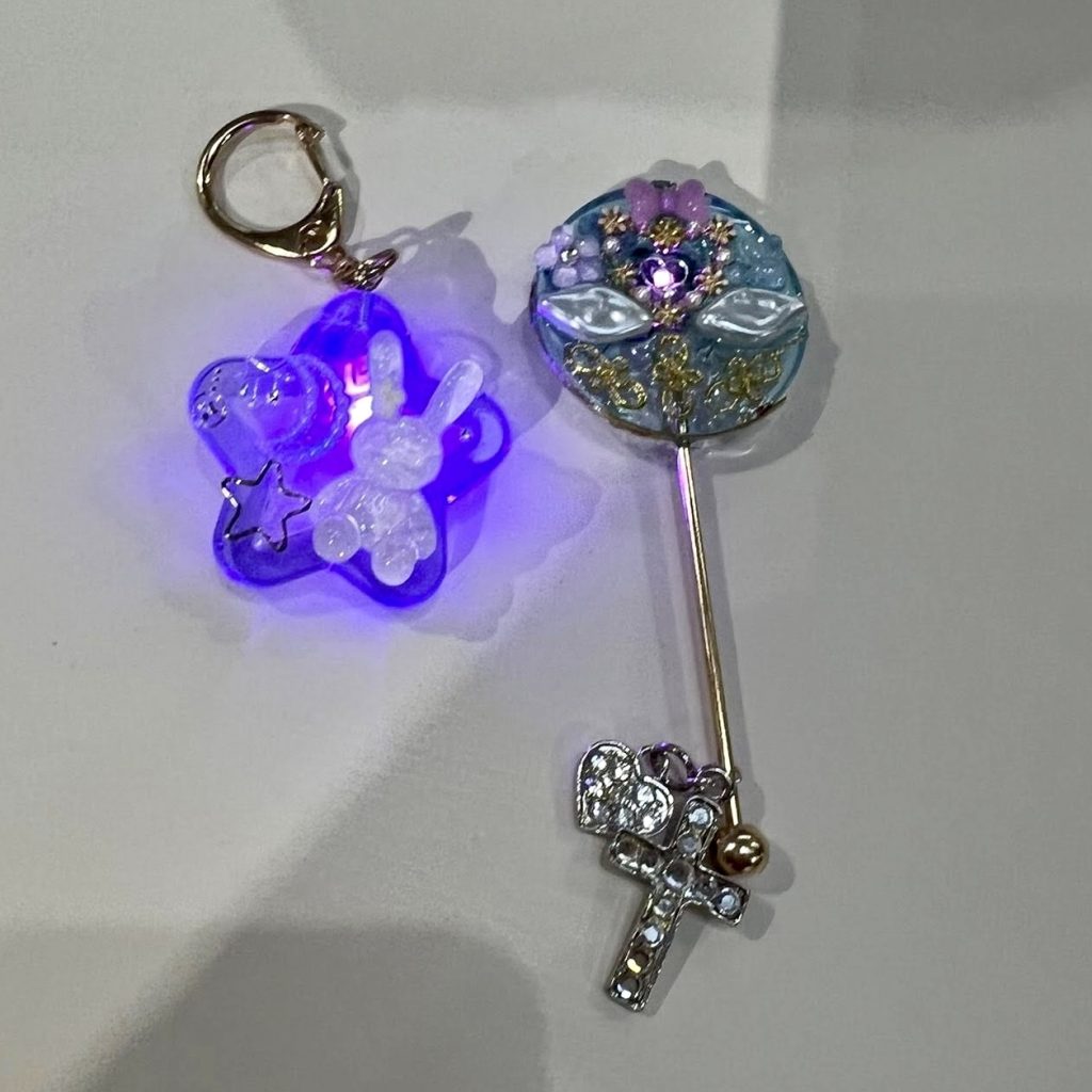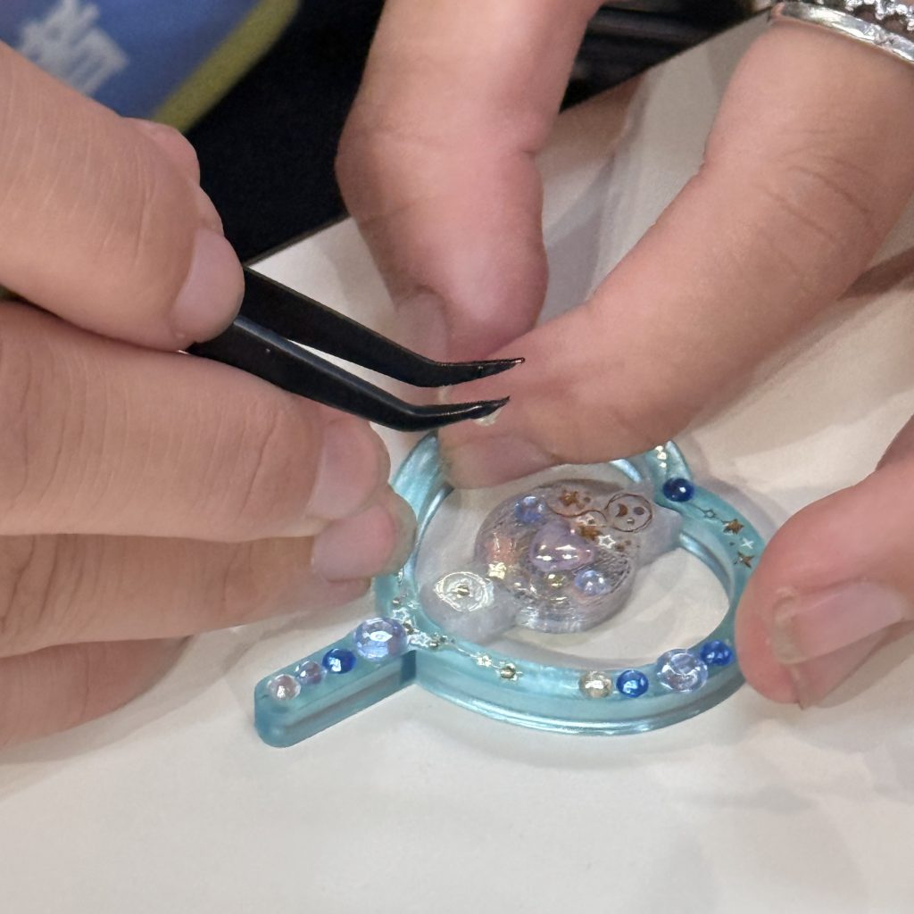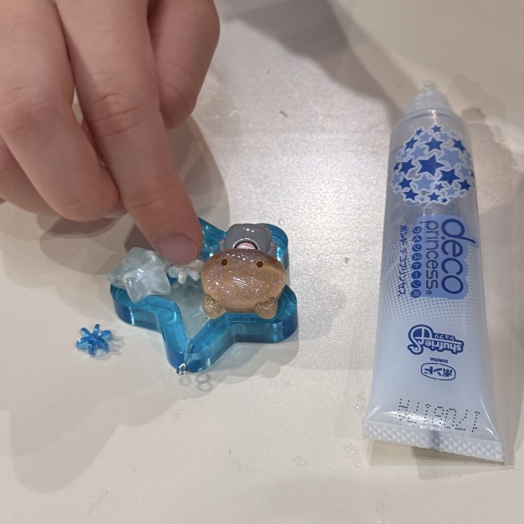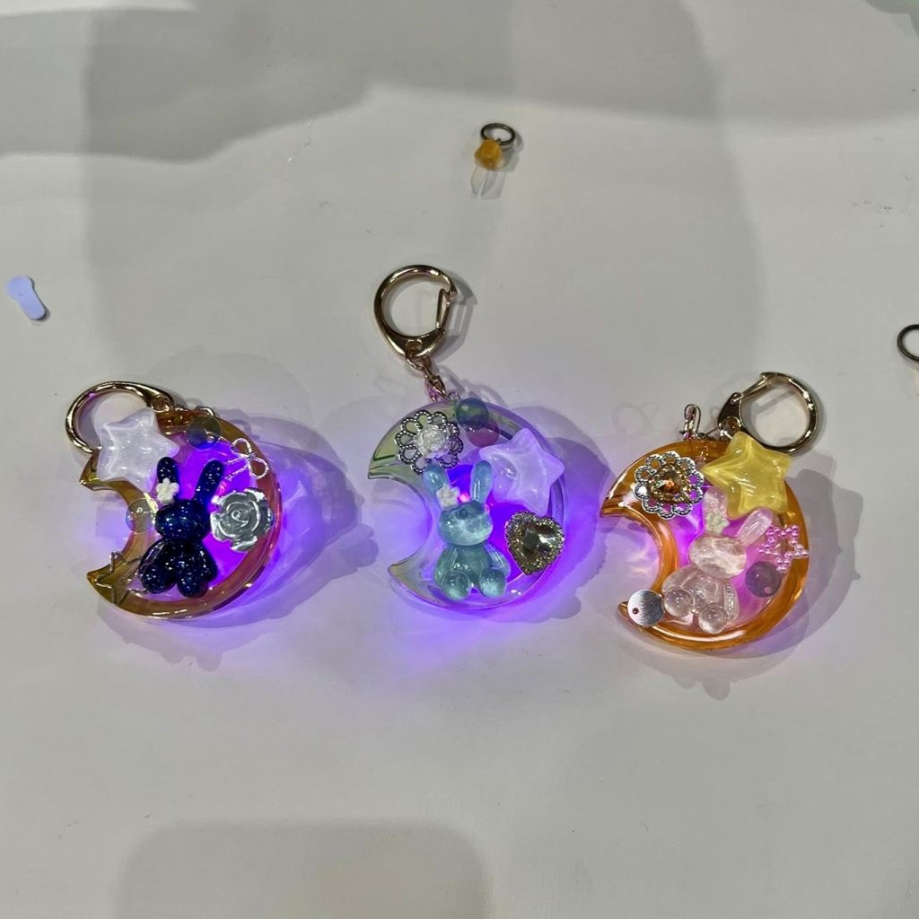 大きめなパーツをクラフトボンドでデコレーションする光るチャームキーホルダーやネコちゃんのデコレーションなどもありました!